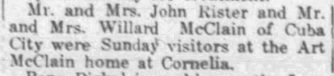 The Platteville Journal and Grant County News (Platteville, Wisconsin) 20 Dec 1933 - John Risters, Willard McClains visited Art McClains