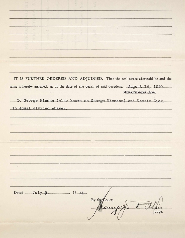 Estate application of Antoinette Niemann by executor John Riggert - page 3 - 02 Jul 1941, Sauk county, Wisconsin