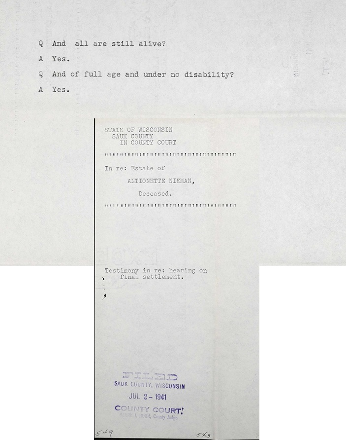County court testimony of Antoinette Niemann estate by executor John Riggert - page 4 - 02 Jul 1941, Sauk county, Wisconsin
