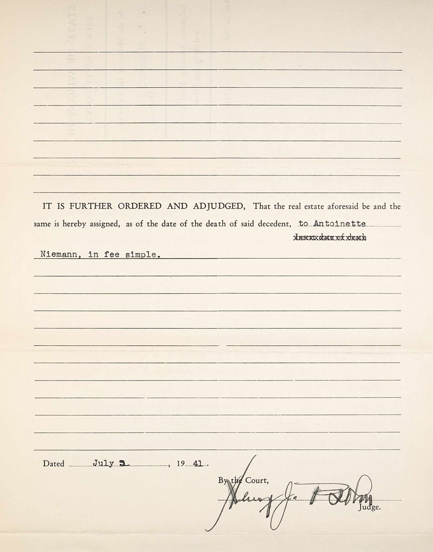 Probate final judgement of estate of C F Niemann - page 3 - 02 Jul 1941 Sauk county, Wisconsin