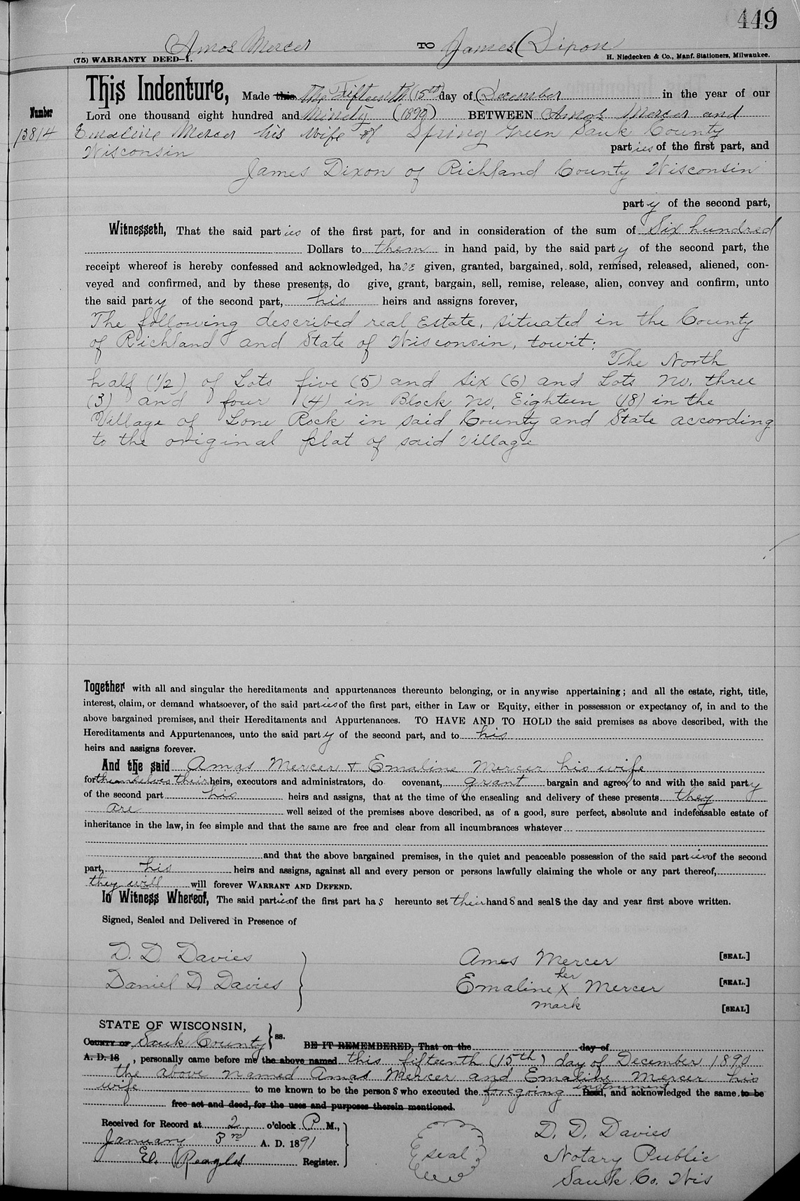 - [S214] Wisconsin Sauk Co Cemetery Records Vol 9, Pg 129.