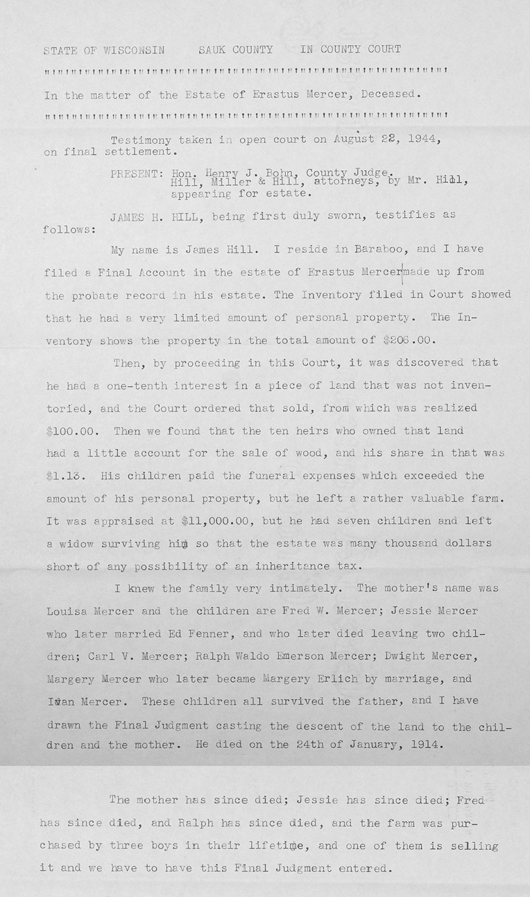 - Dwight Roy Mercer b. 15 Nov 1882, d. Jan 1955