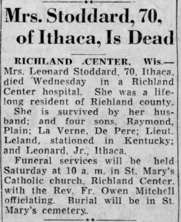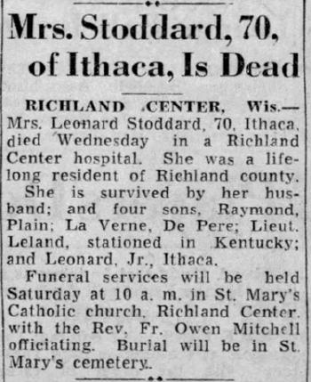 - [S373] U.S. Federal Census 1940 U.S. Federal Census, by Ancestry.com, Year: 1940; Census Place: Ithaca, Richland, Wisconsin; Roll: T627_4518; Page: 10B; Enumeration District: 52-9.