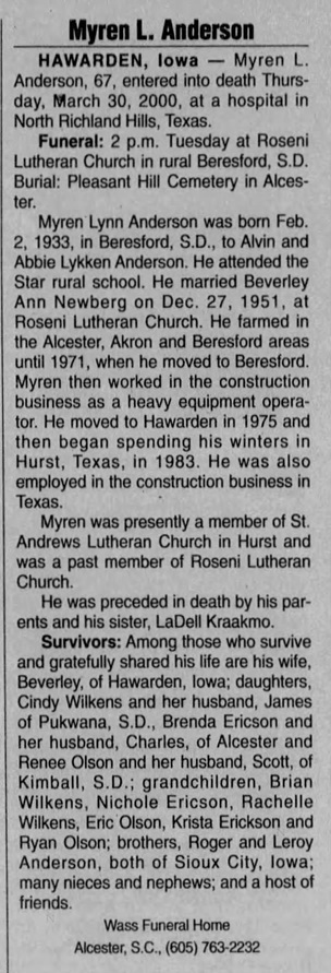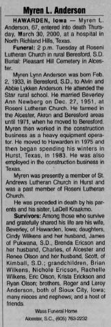 | Father* | Alvin Joel Anderson b. 5 Nov 1903, d. 24 Mar 1974 |