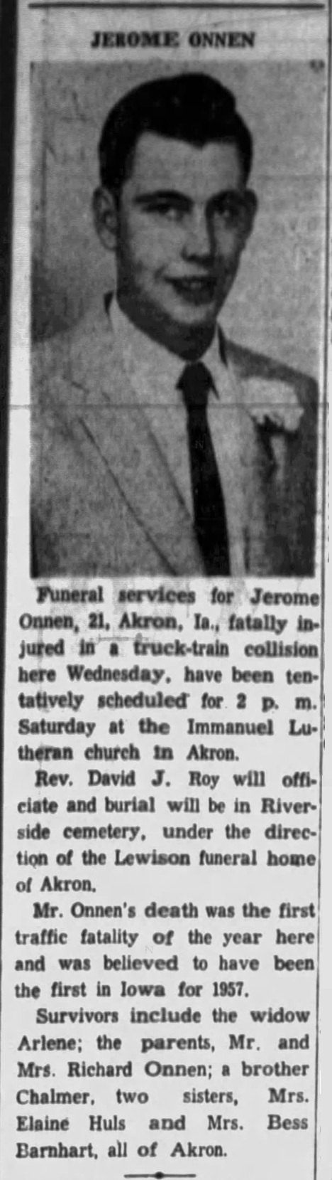 | Father* | Richard F. Onnen b. 4 Jun 1902, d. 27 Oct 1974 |
