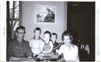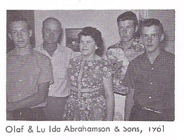 | 1961 | Union, South Dakota | In 1961 at Union, South Dakota, photo of Olaf and LuIda Abrahamson and sons Larry, Jim and Curt - from 1966 Atlas of Union County. |