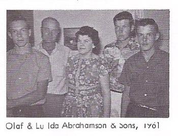 | 1949 | In 1949 Abrahamson extended family photo - Babe, Art and Martin Abraham, Jerry, Marie Olsen, LuIda, Rachel Olsen, Larry, Curt, Jim. | |