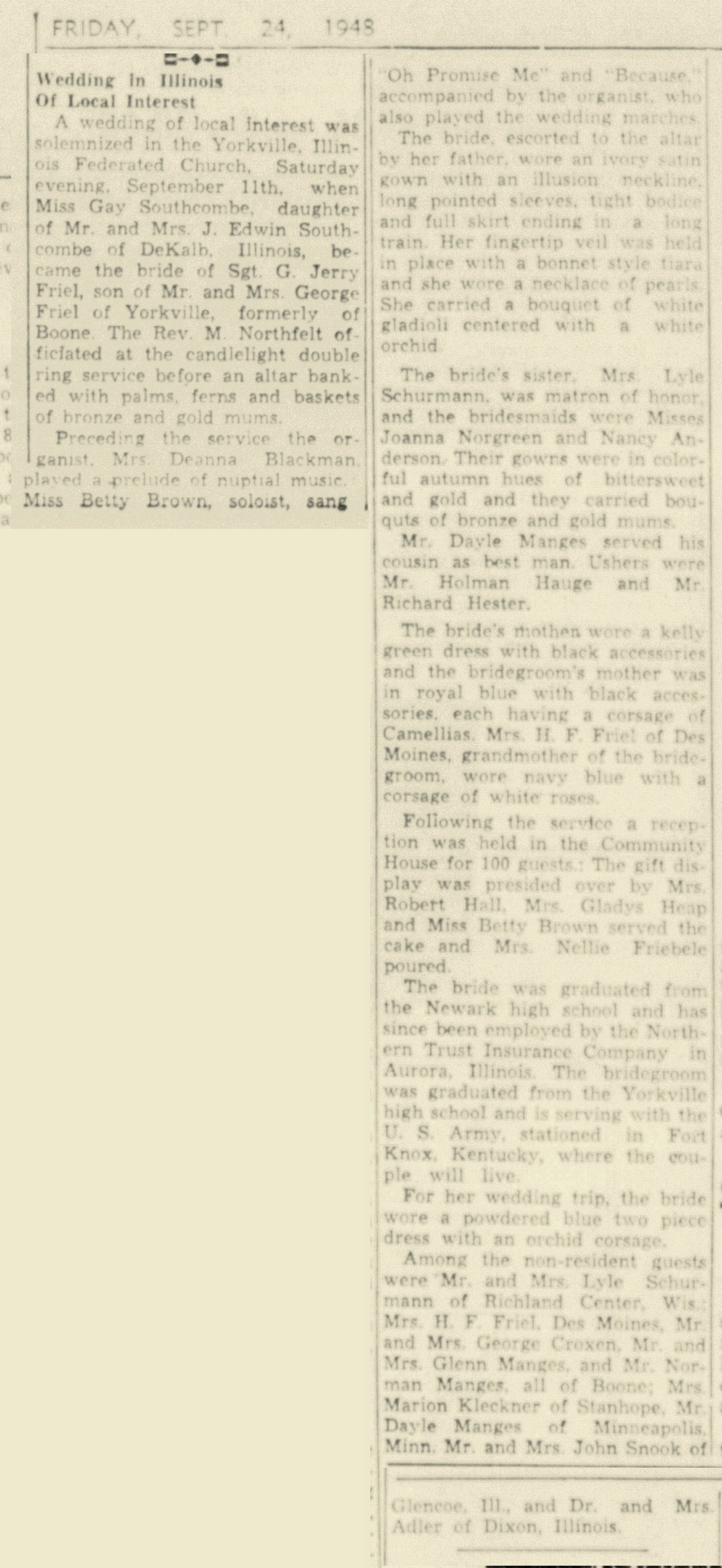 Child of John Patrick Friel and Bernice Elizabeth Macy