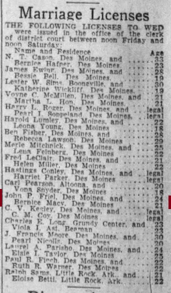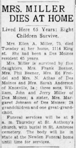 - [S373] U.S. Federal Census 1940 U.S. Federal Census, by Ancestry.com, Year: 1940; Census Place: Des Moines, Polk, Iowa; Roll: T627_1197; Page: 11A; Enumeration District: 100-138.