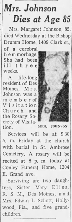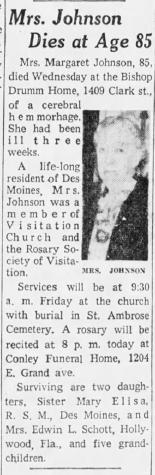- Margaret Johnson b. 8 Jul 1916, d. 8 Dec 1962