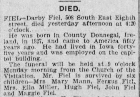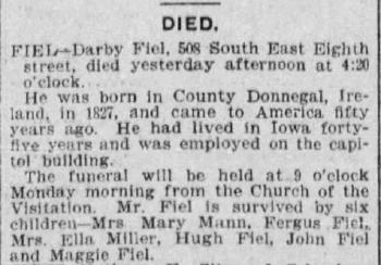 - Fergus Friel+ b. 18 Jun 1859, d. 3 Sep 1911