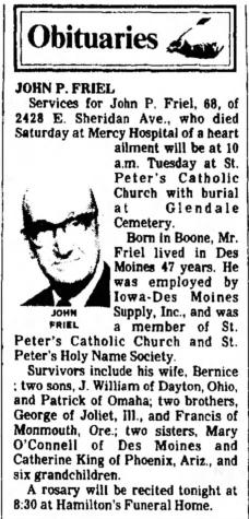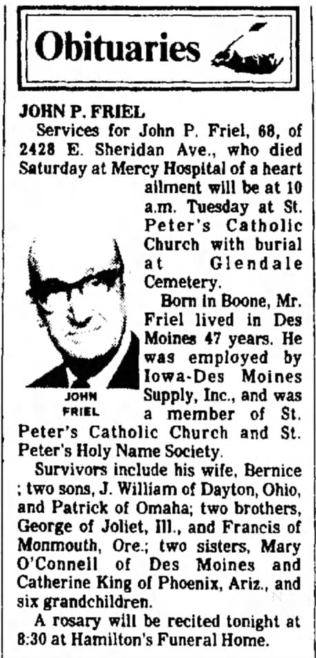 - John Patrick Friel+ b. 18 Oct 1908, d. 18 Jun 1977