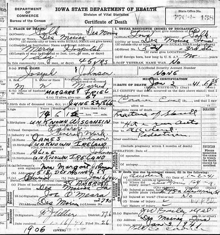 | Father* | Joseph Johnson b. 12 Jan 1867, d. 2 Jan 1941 |