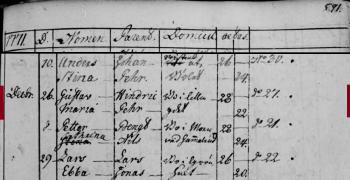 | Mother* | Ingrid Andersdotter b. 29 Oct 1794, d. 21 Jan 1869 |