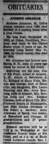 - [S297] Mrs. Leo A. Abrahamson, The Abraham Olson Family - Second Edition, page 68.
