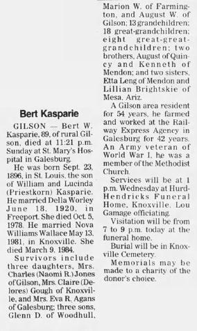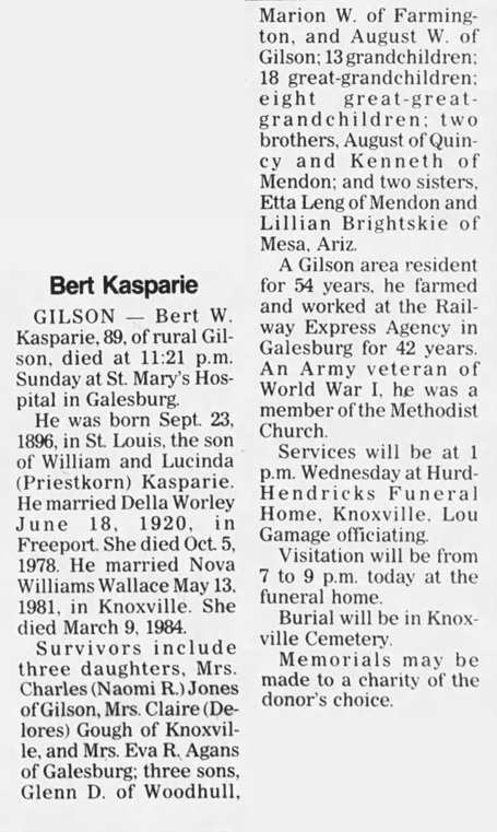 - Glenn Delbert Kasparie b. 3 Jan 1927, d. 28 Mar 2001