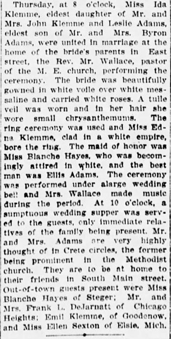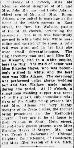 - [S245] U.S. Federal Census 1900 U.S. Federal Census, by Ancestry.com, ED101. Dwelling 234.Year: 1900; Census Place: Crete, Will, Illinois; Roll: T623_353 Page: 13B; Enumeration District: 101.