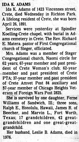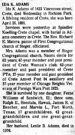 Children of Leslie Byron Adams and Ida Linda Klemme