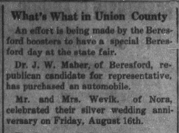The index was compiled by Joy R. Fisher Std Atlas of Union Co, SD, pg 27. - [S261] Land Office Records Land Patent Record, by Bureau of Land Management, Accession/Serial #: 259242 BLM Serial #: SDBF 0003902.