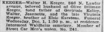 - Walter Keeger Jr. b. 11 Oct 1918, d. Nov 1968