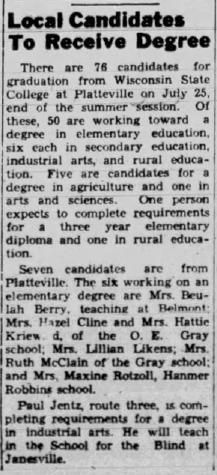 - [S423] U.S. Federal Census 1950 U.S. Federal Census, by Ancestry.com, Enumeration District: 22-45; Description: Paris town - Outside Dickeyville village. Sheet 3.