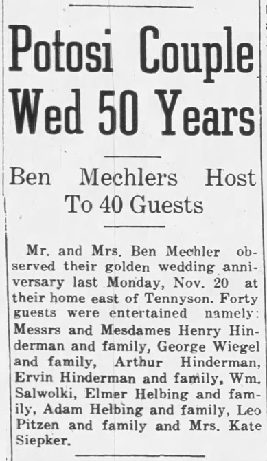 - Henry Bernard Mechler b. 31 Mar 1905, d. 11 Sep 1970