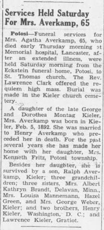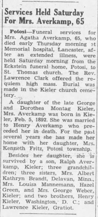 - Agatha E. Kieler+ b. 5 Feb 1892, d. 18 Jul 1957