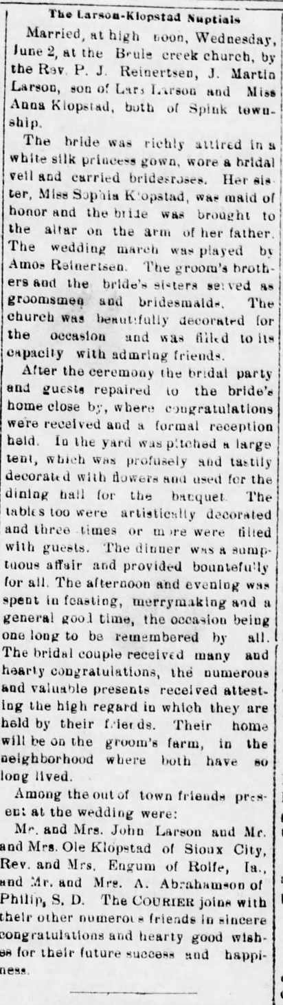 Children of Johan Martin Larson and Anna Johanna Klopstad