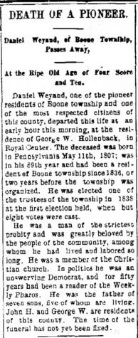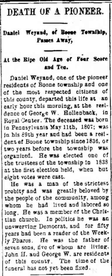 - Isaiah Weyand+ b. 18 Jun 1831, d. 6 Jan 1911