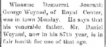 - George Washington Weyand+ b. 31 Jan 1844, d. 26 Jan 1923