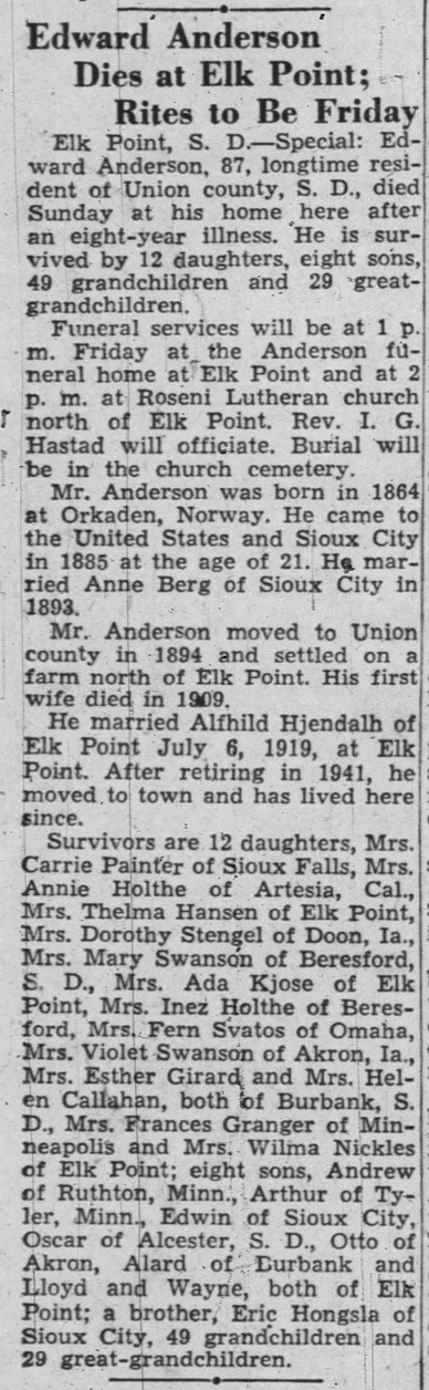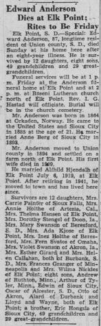 - Edwin Anderson b. 15 Apr 1900, d. Oct 1977