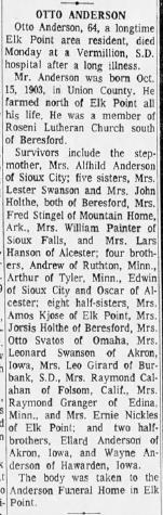 - Otto Anderson b. 15 Oct 1903, d. 22 Apr 1968