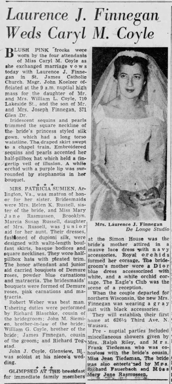 Child of Caryl Margaret Coyle and Laurence J. Finnegan