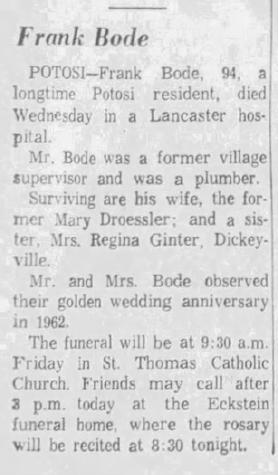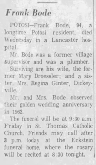 | Father* | Joseph Bode b. 25 Mar 1834, d. 10 Oct 1911 |