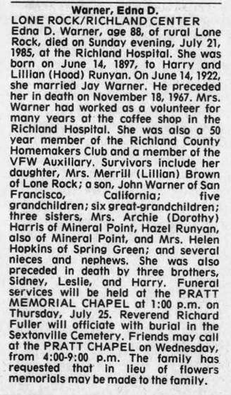 F, b. 14 June 1897, d. 21 July 1985