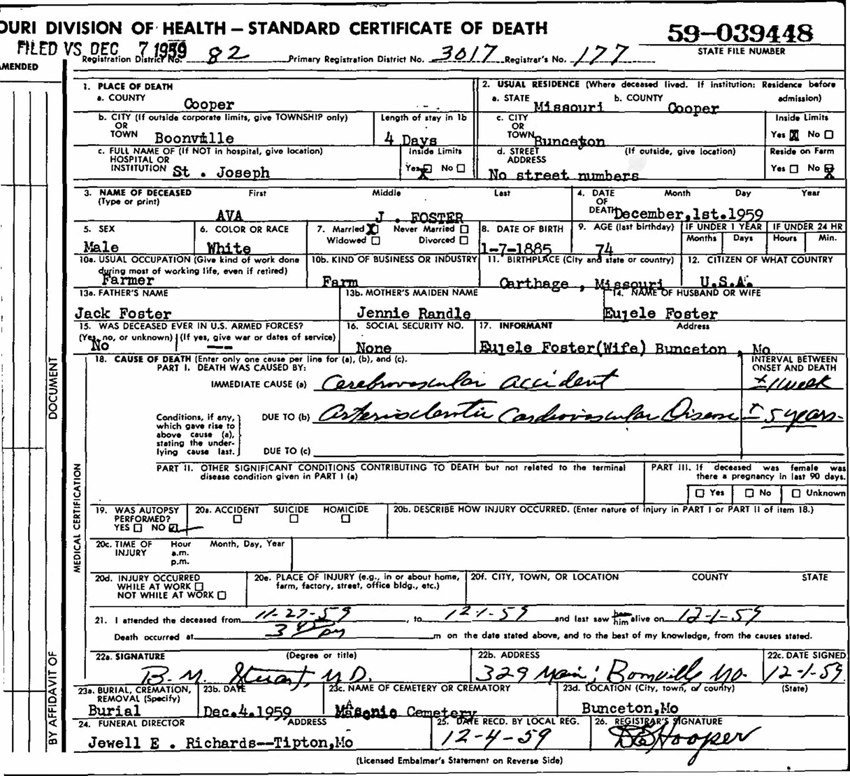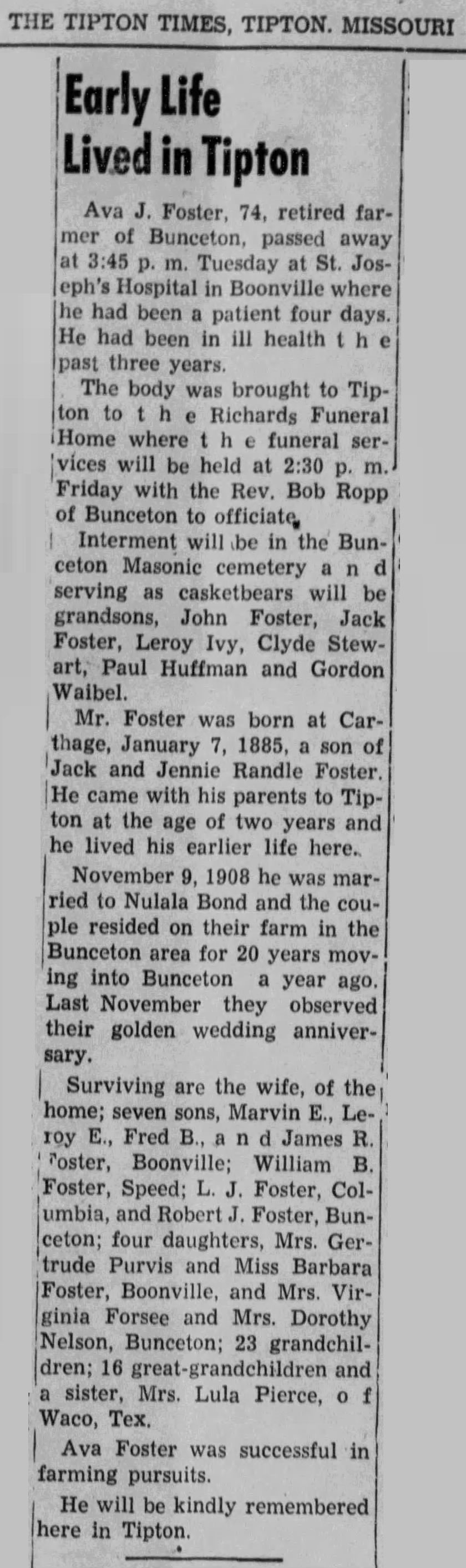 - Ava Jack Foster b. 5 Jul 1936, d. 3 Jun 2004