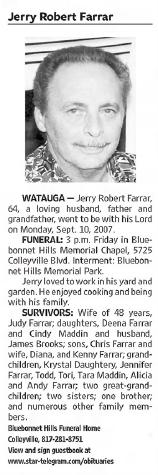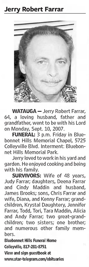 - Bobby Wayne Pierce b. 13 Mar 1936, d. 28 Apr 1988
