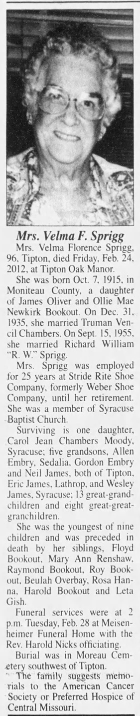 Child of Velma Florence Bookout and Truman Vencil Chambers
