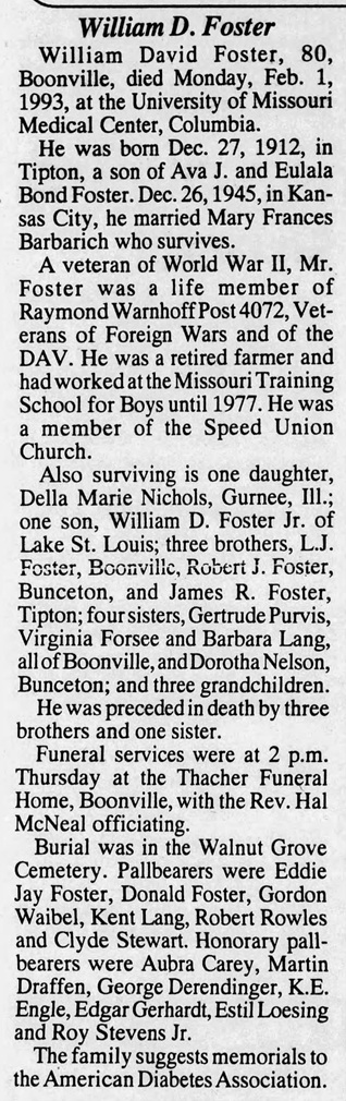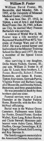 - William David Foster b. 27 Dec 1912, d. 1 Feb 1993