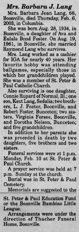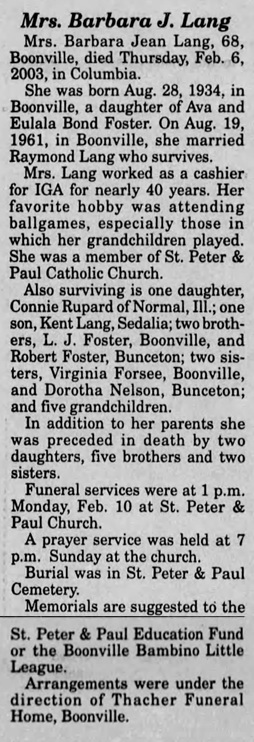 - Barbara Jean Foster b. 28 Aug 1934, d. 6 Feb 2003