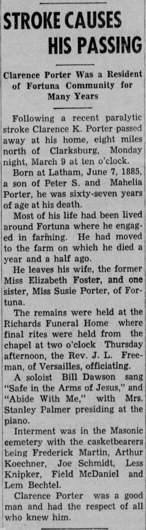 - [S243] U.S. Federal Census 1920 U.S. Federal Census, by Ancestry.com, Year: 1920; Census Place: Willow Fork, Moniteau, Missouri; Roll: T625_935; Page: 4B; Enumeration District: 118; Image: 885.
