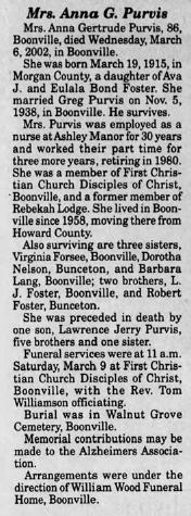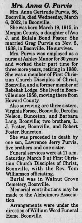 - Anna Gertrude Foster b. 19 Mar 1915, d. 6 Mar 2002