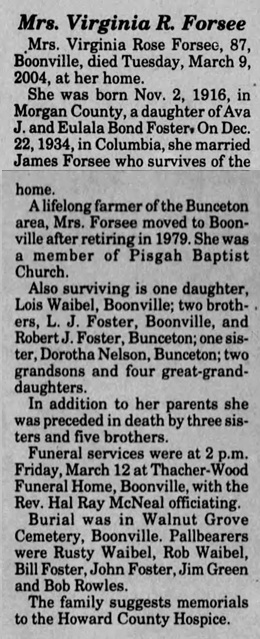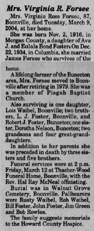 - Virginia Rose Foster b. 2 Nov 1916, d. 9 Mar 2004