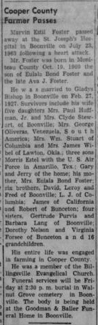 - Marvin Estil Foster b. 19 Oct 1909, d. 23 Jul 1963