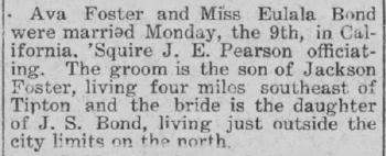 | Father* | Ava Jay Foster b. 7 Jan 1885, d. 1 Dec 1959 |
