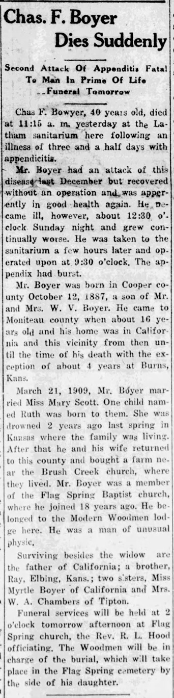 - Charles Francis Boyer+ b. 12 Oct 1886, d. 7 Sep 1927
