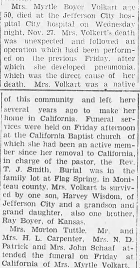 - Myrtle M. Boyer+ b. 10 Feb 1889, d. 27 Nov 1940