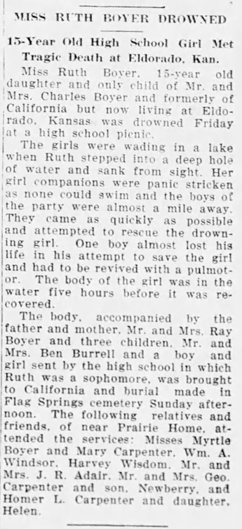 - Ruth Irene Boyer b. 12 Feb 1910, d. 14 Mar 1925