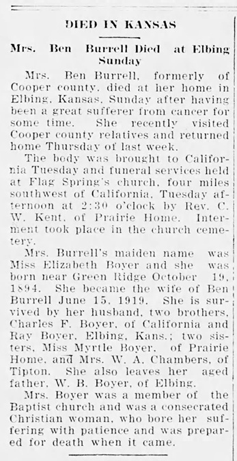 - Mary Elizabeth Boyer b. 19 Oct 1894, d. 25 Jul 1926