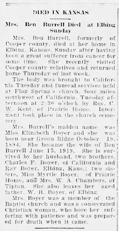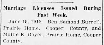 - [S250] U.S. Federal Census 1930 U.S. Federal Census, by Ancestry.com, Year: 1930; Census Place: Prairie Home, Cooper, Missouri; Page: 3B; Enumeration District: 0023.